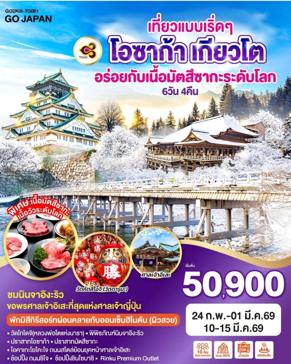 - Ringku out let พิเศษ เที่ยวยชมปราสาทโอซาก้า หมู่บ้านชิราคาวาโก วัดน้ำใส วัดทอง ชมตลาดปลา ชินไซบาชิ